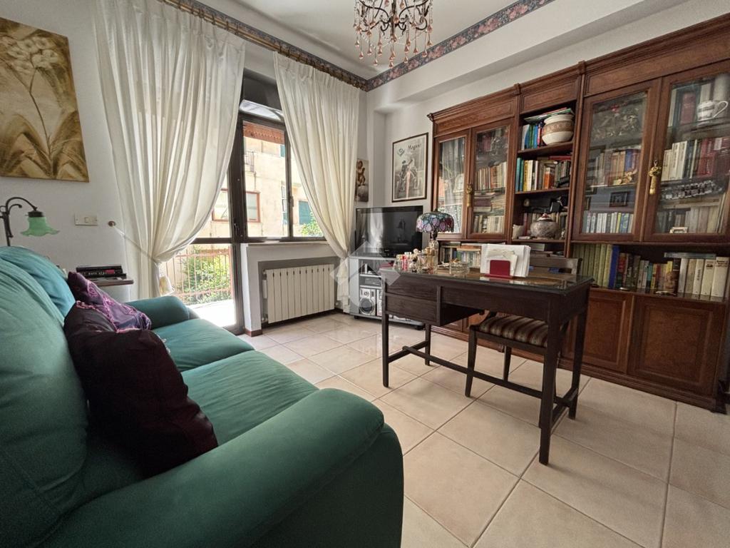 L'immobile che offre spazi ben distribuiti e funzionali è composto da ingresso su un ampio soggiorno, cucina abitabile, ripostiglio, due camere da letto, studio, due bagni e quattro balconi che garantiscono una buona luminosità.